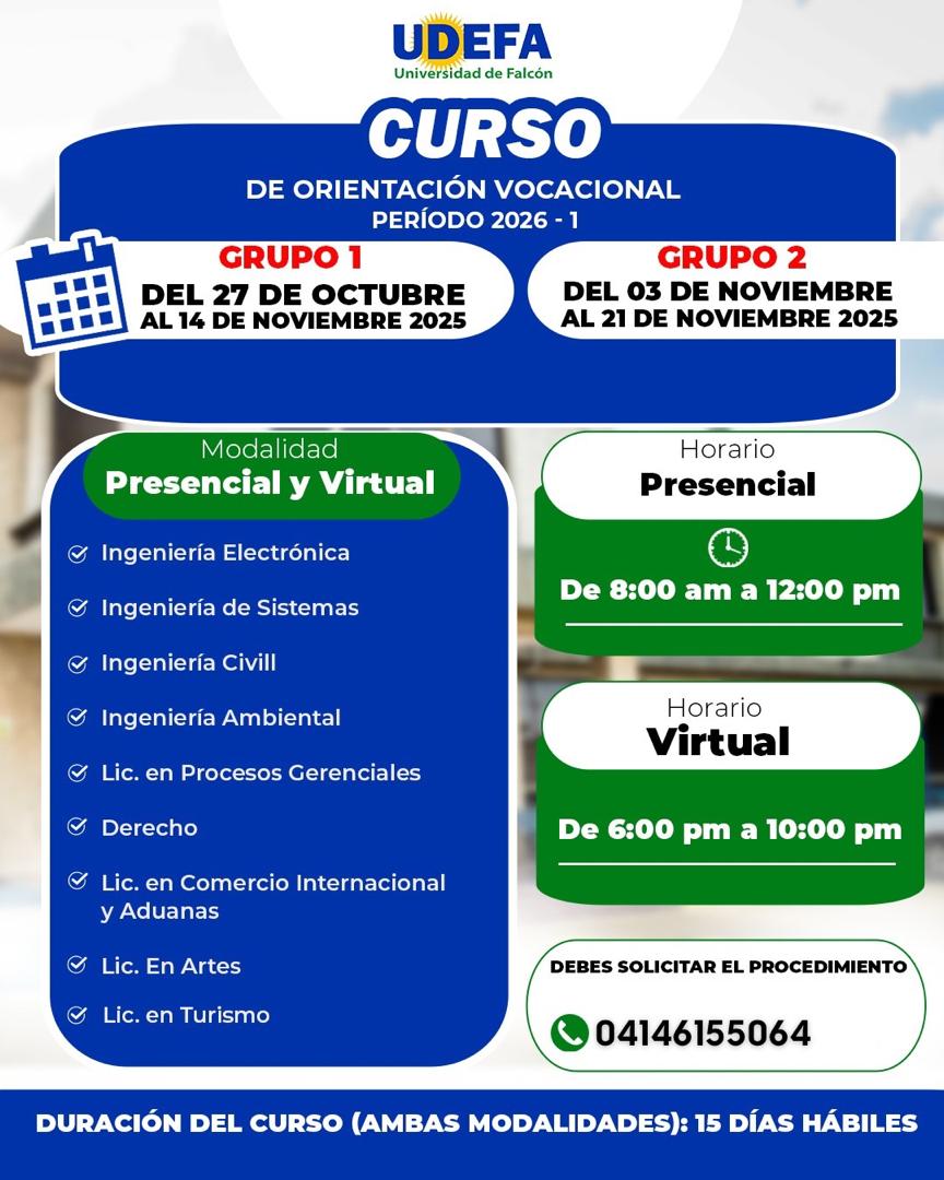 El Curso de Iniciación Universitaria es un requisito obligatorio para los bachilleres y profesionales que deseen iniciar estudios en la Universidad de Falcón. Sólo deben llenar la planilla de preinscripción y escoger uno de los cursos que se encuentren disponibles.